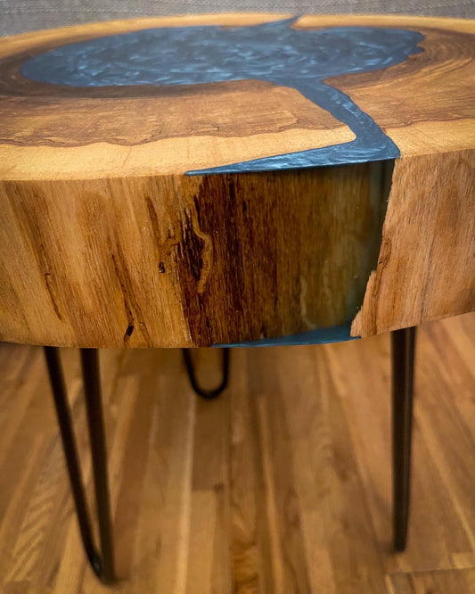 Ash Wood and Blue Epoxy Resin Coffee Table