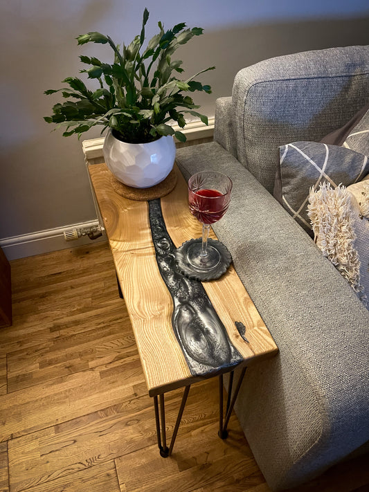Please get in touch if you are looking for custom-made order. We can create a coffee table, side table or charcuterie board with a wood type and resin colours of your choice.