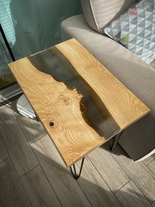 Ash Wood and Transparent Grey Epoxy Resin River Side Table