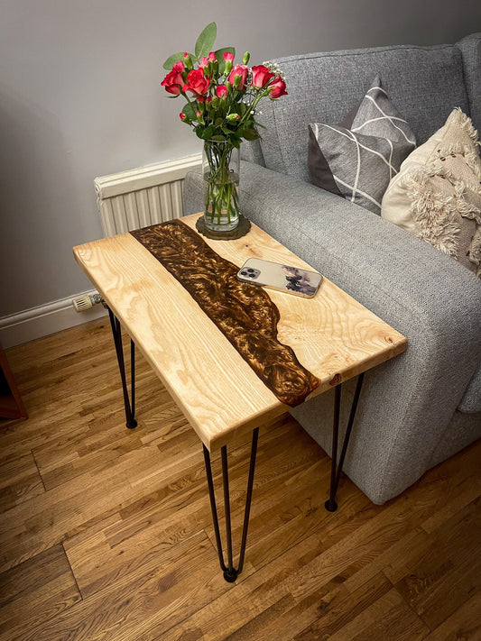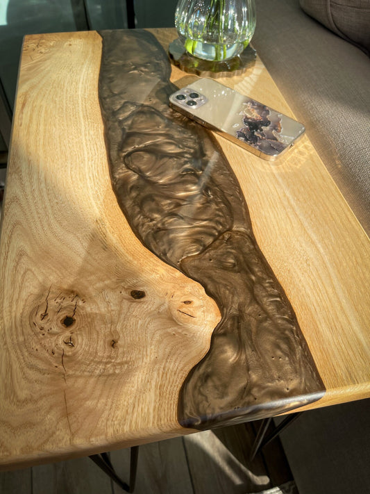 Ash Wood and Golden Chocolate Epoxy Resin River Side Table
