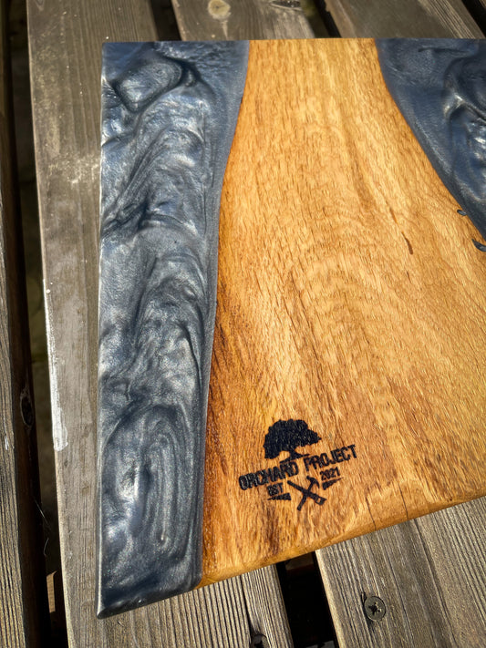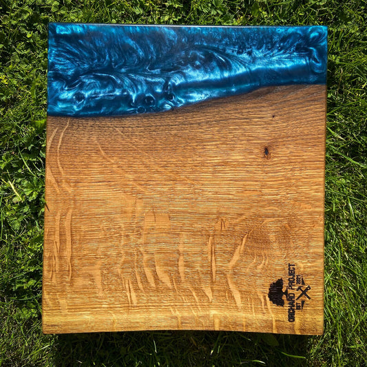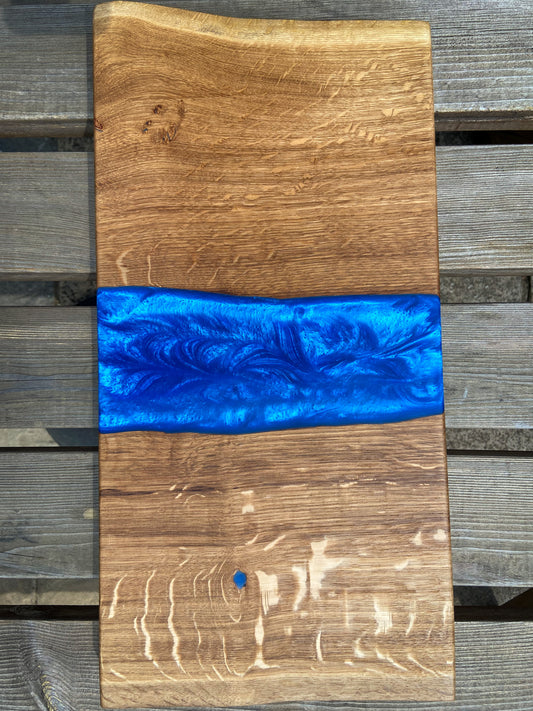 Medium Oak Wood and Blue Epoxy Resin Charcuterie Board