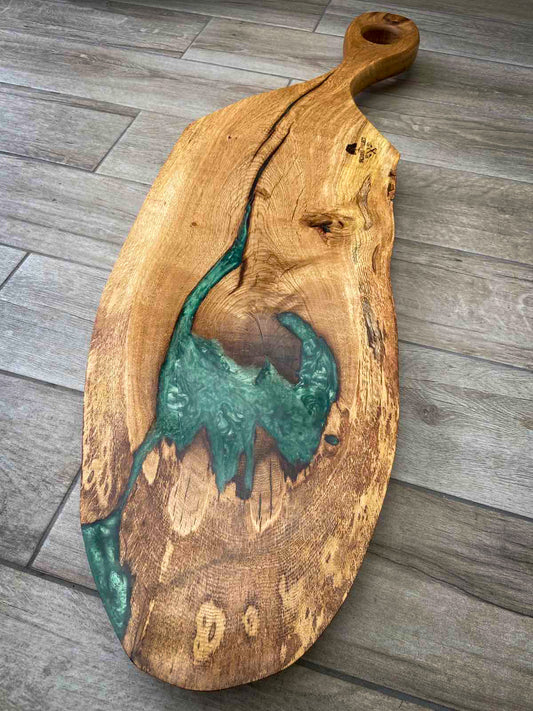Extra Large Oak Wood and Green Epoxy Resin Charcuterie Board