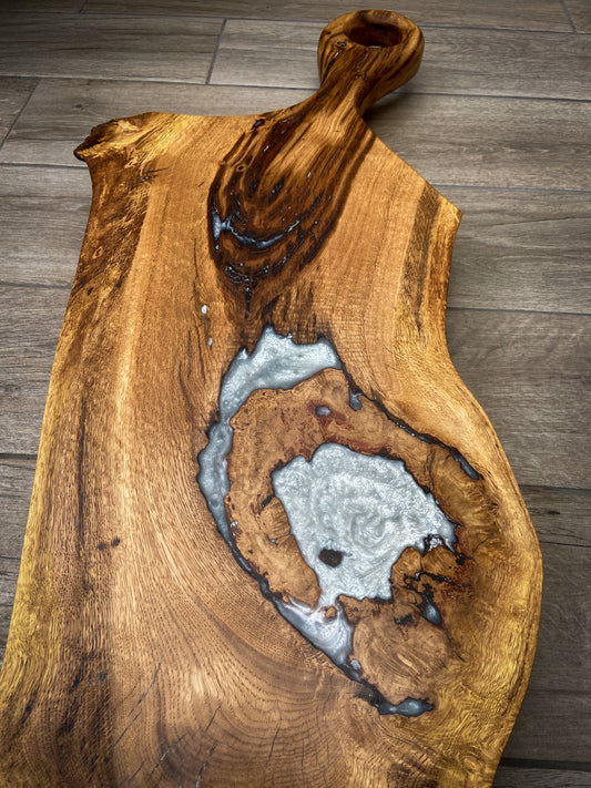 Extra Large Oak Wood and White Pearl Epoxy Resin Charcuterie Board