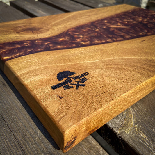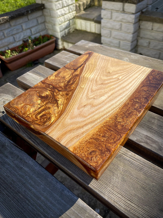 Medium Catalpa Wood and Golden Caramel Epoxy Resin Charcuterie Board