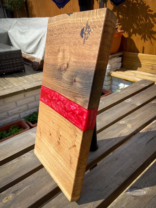 Large Oak Wood and Red Raspberry Epoxy Resin Charcuterie Board