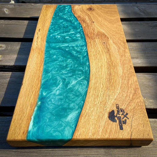 Large Oak Wood and Turquoise Epoxy Resin Charcuterie Board