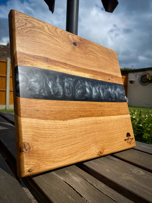 Medium Oak Wood and Smoked Grey Epoxy Resin Charcuterie Board