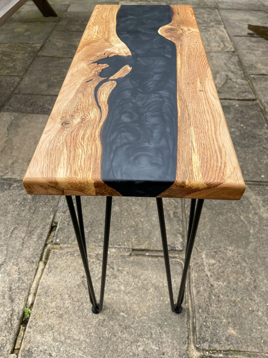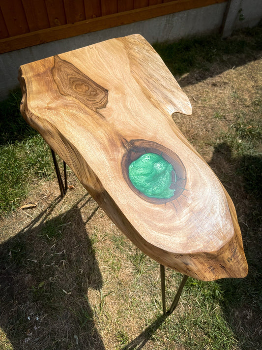 English Walnut and Pickled Green Epoxy Resin Side Table